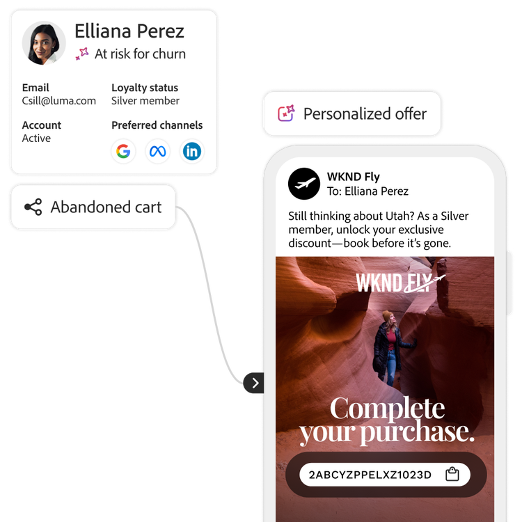 개인화된 경험은 충성도와 매출을 견인합니다. Adobe의 AI 기반 고객 참여 솔루션을 통해 에이전틱 워크플로우가 마케팅 활동 기획, 실행, 분석을 지원하고 고객과 신속하고 개인적으로 소통할 수 있는 풍부한 인사이트를 제공합니다.
