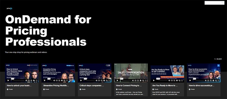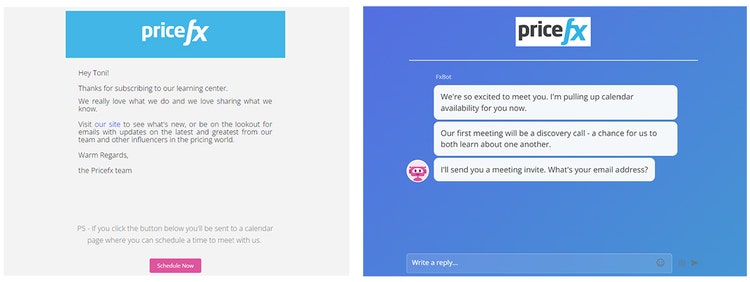 Los clientes pueden suscribirse a los correos electrónicos del centro de aprendizaje de Pricefx y agendar una reunión con un integrante del equipo de ventas.