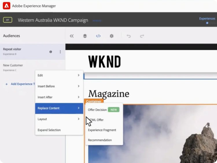 Aprovecha las capacidades de experimentación avanzadas de Edge Delivery Services que te permiten descubrir información más detallada. Prueba distintas opciones de contenido, diseños y componentes en varias páginas y segmentos.