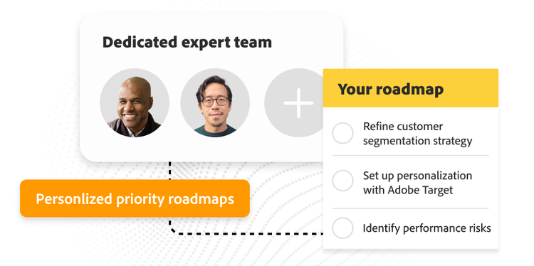 Adobe Success-Pläne bieten rundum personalisierten Support. Sie stellen sicher, dass euch das nötige technische Know-how und die erforderliche strategische Beratung zur Verfügung stehen, damit euer Unternehmen immer einen Schritt voraus bleibt.