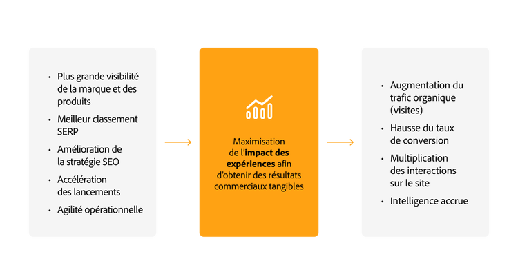Que diriez-vous de générer davantage de trafic sur votre site sans augmenter vos dépenses publicitaires ou d’améliorer vos taux de conversion sans devoir brader vos produits ni faire appel à de coûteux data scientists ? Imaginez que vous puissiez offrir des expériences personnalisées à chaque membre de votre clientèle. C’est exactement ce que proposent Adobe Commerce et ses fonctionnalités de pointe, conçues pour stimuler le trafic organique et les conversions.