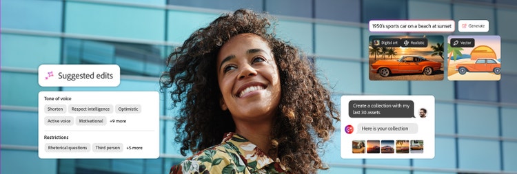 Reimagine what’s possible at every stage of the creative journey. Adobe's suite of generative AI tools empowers teams to efficiently produce on-brand content, personalize assets for diverse audiences, and rapidly extract insights from data.