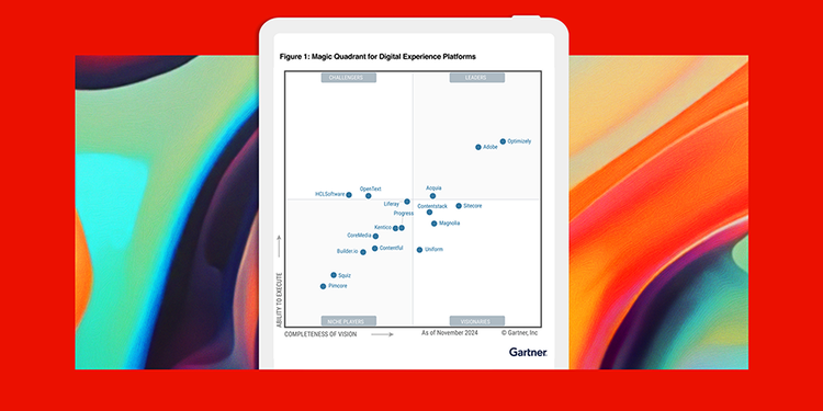 Adobe has been recognized by Gartner® in their latest Magic Quadrant™ for Digital Experience Platforms — specifically for our Ability to Execute and Completeness of Vision.