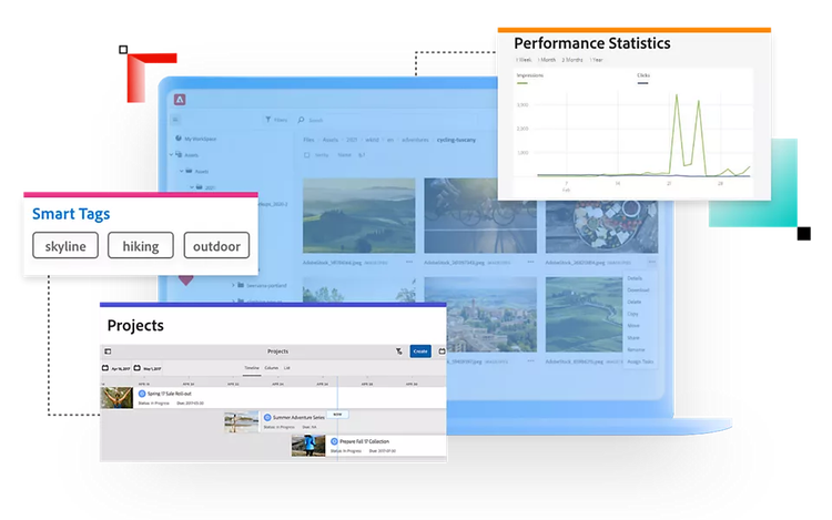 Tenemos la única solución que proporciona una conexión nativa con Adobe Analytics, lo que hace que los datos de rendimiento de los activos se encuentren disponibles en el DAM para que los expertos en marketing puedan acceder a ellos y emplearlos.