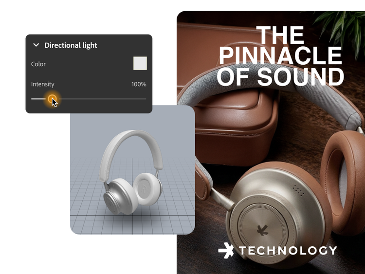 The 3D digital twin solution in Firefly Creative Production is a cloud-native 3D product visualization and content engine. It uses photorealistic 3D product models or digital twins to automatically generate pixel-perfect images and videos for ecommerce and marketing. It connects Substance 3D, Firefly generative AI, and rendering so brands can replace many physical photoshoots with scalable, automated workflows that create packshots, lifestyle scenes, and short videos from a single source-of-truth product model.
