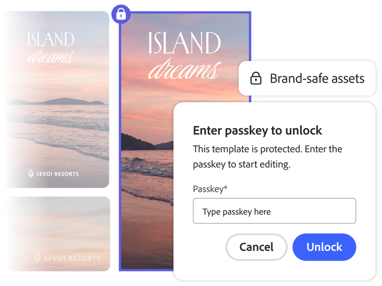 - Governed templates. Use Adobe Express templates to define which elements can be edited and which must remain locked.
