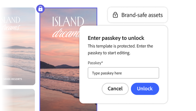 - Governed templates. Use Adobe Express templates to define which elements can be edited and which must remain locked.