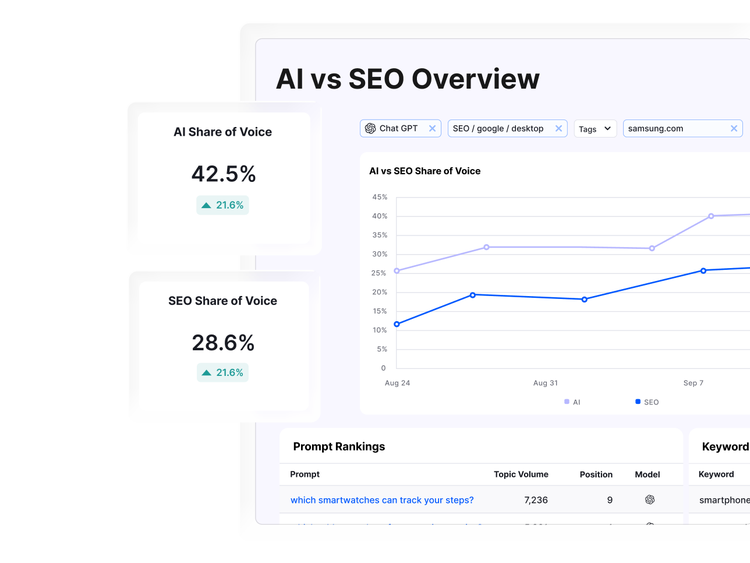 Replace fragmented tools with a connected visibility system — so you can confidently manage how your brand is discovered, evaluated, and selected across search engines and AI-driven experiences.