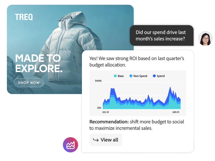- Use uma interface de IA conversacional para gerar análises instantaneamente, descobrir direcionadores de desempenho e receber ações recomendadas, transformando perguntas em resultados.