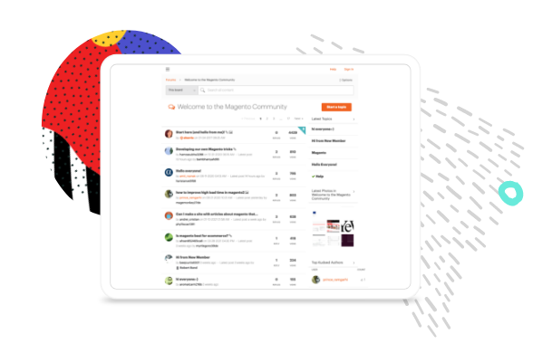 A Adobe Commerce, viabilizada pela Magento, conecta você a diversos usuários que querem aprimorar seus sites de e-commerce. Faça parte da rede e descubra novas dicas e truques, anotações de treinamento e recursos técnicos. Se você tiver dúvidas ou problemas, deixe uma mensagem nos fóruns de e-commerce e aguarde uma resposta.