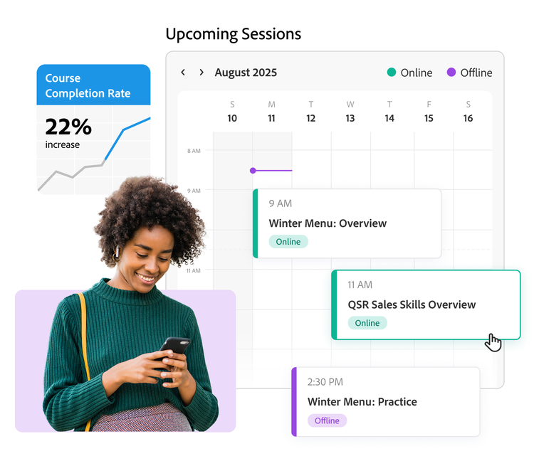 Ofereça verdadeiras experiências de aprendizado combinado usando uma configuração simples e intuitiva para permitir que administradores e instrutores configurem programas complexos com facilidade.