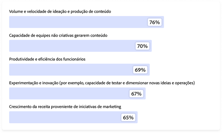 As organizações estão ansiosas para expandir a IA generativa e a IA agêntica, mas muitas ainda ficam aquém das ferramentas fundamentais, estruturas de dados e práticas de medição necessárias para dar suporte à implantação em toda a organização. Mais da metade (53%) diz que sua cadeia de suprimento de conteúdo permanece amplamente linear e com uso intenso de recursos, e apenas 47% estão usando IA generativa ou agêntica para design de jornada ou ativação onicanal, capacidades essenciais para entregar personalização em grande escala.