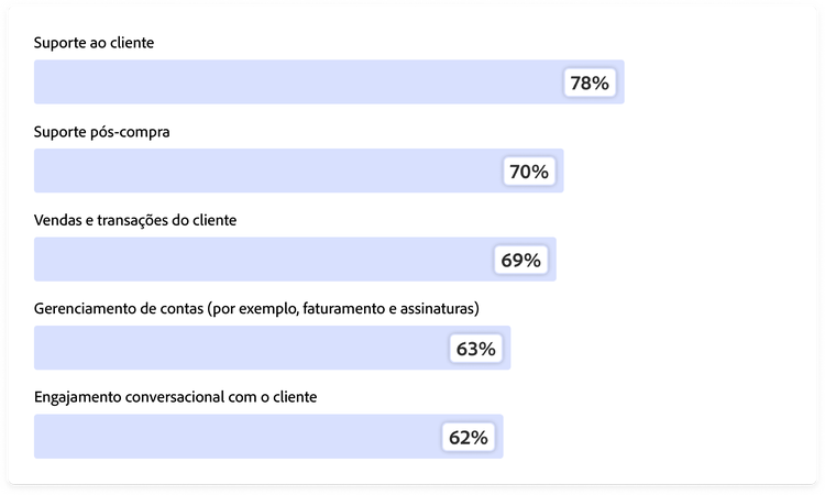 - Apoiar vendas com recomendações autônomas de produtos ou qualificação de leads (58%).