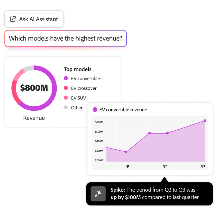 Use comandos em linguagem natural para coordenar agentes de IA da Adobe e de terceiros para acelerar fluxos de trabalho de marketing, entregar personalização em tempo real e gerar impacto.