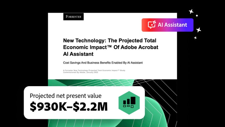 Unlock insights faster and discover how Acrobat AI Assistant drives cost savings and business success in Forrester Consulting's tech study commissioned by Adobe. Key results include: