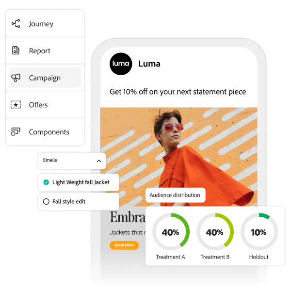 Start by framing experiments or upcoming test backlogs around defined and agreed upon business objectives — whether it’s average order value, conversion lift, or reduced churn. Teams should anchor every test to a measurable KPI and outcome — ensuring each AI experiment insight or generated test idea contributes directly to revenue, retention, or engagement metrics. Adobe Journey Optimizer Experimentation Accelerator is designed to enable experimentation teams to set up and run tests in this manner.