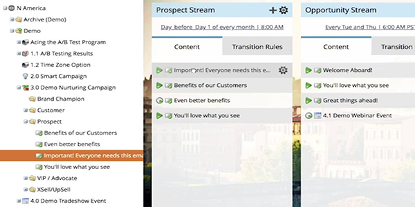 Control the flow of content with nurture campaigns — use streams to customize send cadences and ensure your leads are always receiving the most relevant, effective content.