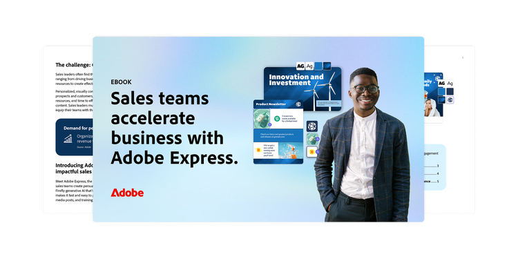 Sales teams can achieve a 6%–10% increase in revenue with personalized customer experiences. To capture this growth, they strive to create impactful and personalized content but often struggle with limited time, resources, and creative support to meet this goal. In this guide, learn how Adobe Express can help your sales team: