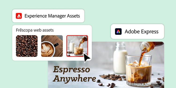 - Access and edit content in Adobe Express from Adobe Experience Manager Assets and save files back to the DAM.