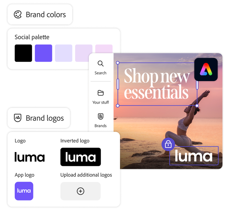 - Ensure brand consistency. Use brand kits, locked templates, and Custom Models directly in Adobe Express to ensure your brand continues to stand out as creation scales.