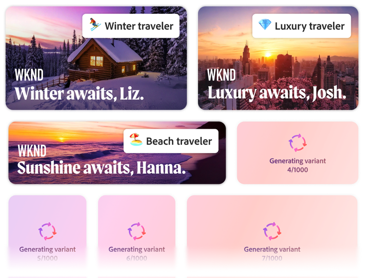 Boost production of asset variations with Adobe Firefly Services to power personalization, localization, ecommerce, and more.