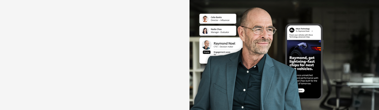 ไม่ว่าคุณจะขายซอฟต์แวร์ ฮาร์ดแวร์ หรือบริการ ผู้ซื้อของคุณไม่ใช่แค่คนคนเดียว แต่เป็นกลุ่มคน Adobe ช่วยให้คุณระบุและมีส่วนร่วมกับกรรมการจัดซื้อและบัญชีลูกค้าต่างๆ ได้อย่างชาญฉลาดในวงกว้าง เพื่อเร่งความเร็วของไปป์ไลน์ สร้างไปป์ไลน์ที่เข้าเกณฑ์ได้มากขึ้นและสร้างโอกาสที่เป็นไปได้