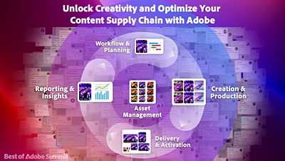 瞭解 Adobe 如何建立和維護現代化、可擴展且可重複的內容供應鏈,同時始終將創造力放在核心位置。Adobe 客戶將分享他們的行銷團隊如何提高效率,以及創意團隊如何更好地完成更多創意工作。瞭解如何滿足從創建到交付的爆炸式內容個人化要求。