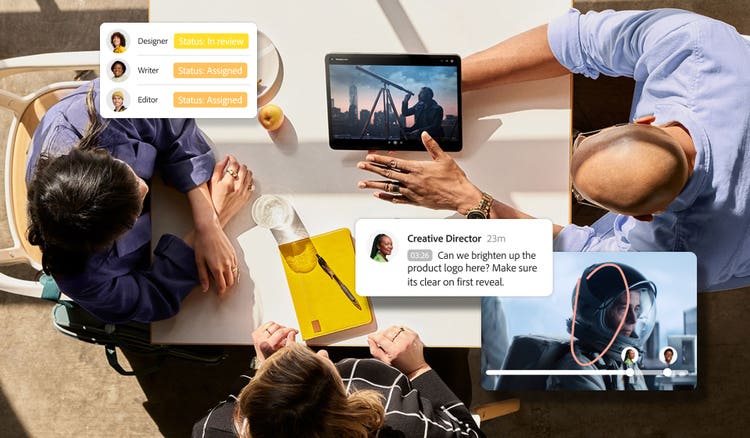 - 消除分散、含糊的回饋意見和冗長的電子郵件鏈,轉而使用直接整合至 Adobe Premiere Pro 中的精確到影格的評論。