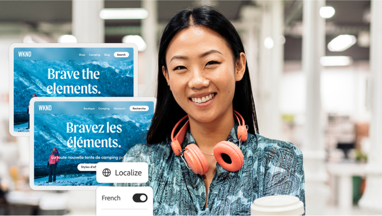 Quickly publish sites in multiple languages using built-in translation workflows, including machine translation services that streamline and speed up translation efforts. You can also configure site assets — from copy to Content Fragments to image metadata — globally, in multiple languages, in a matter of minutes.