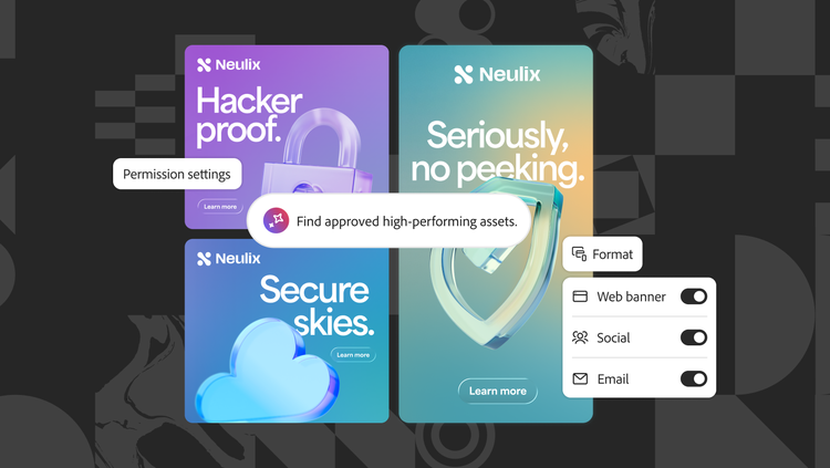 Assets surface directly inside the tools teams already use, from Figma to Microsoft Office, through Adobe Experience Manager connectors. Content Advisor recommends the most relevant, approved assets based on a brief or intent, available within your team’s preferred applications, strengthening your content supply chain.