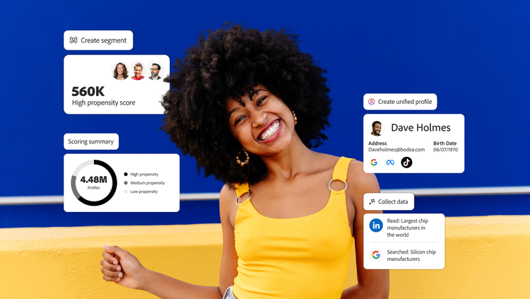 To learn more about Adobe Real-Time Customer Data Platform and discover how it collects B2C and B2B data from diverse systems, unifies it into real-time profiles and prepares it for activation across any channel, book a demo or watch the overview video today.