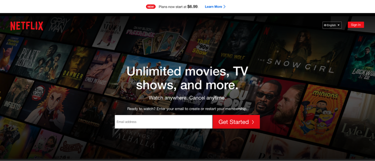 Key aspects of Netflix's current landing page and user acquisition strategy include: