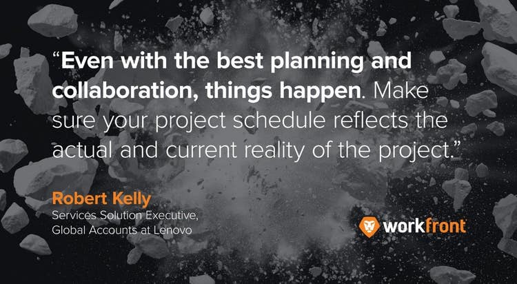Robert Kelly, services solution executive, global accounts at Lenovo and project management expert explained the importance of maintaining an accurate project schedule: “Even with the best planning and collaboration, things happen. Make sure your project schedule reflects the actual and current reality of the project.”