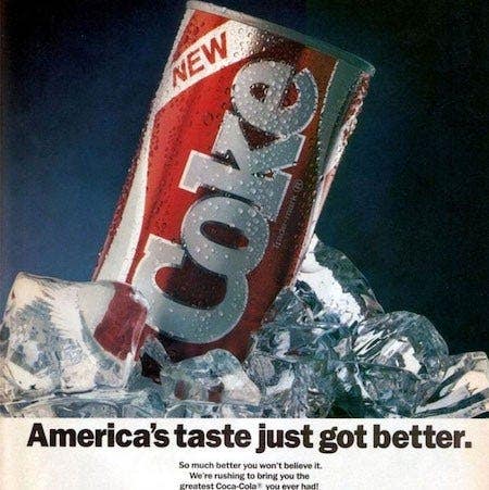 After testing a new recipe on 200,000 subjects and finding that people preferred it over the traditional version, Coca-Cola unveiled New Coke in 1985. That sounds like a safe move, right? Wrong.