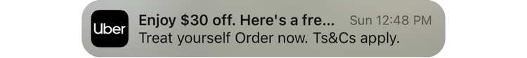 - Calls to action and general deals. For example, a notification to confirm a delivery address.