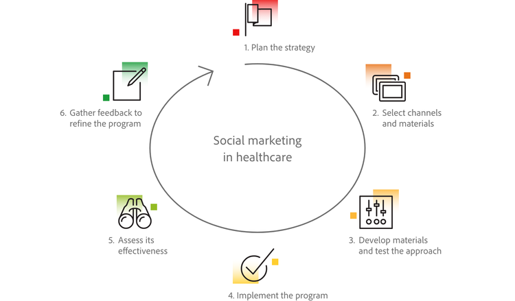 Doing so requires a cohesive strategy that keeps the marketing team focused on its overall mission and objectives. Prior to launching a social marketing campaign in healthcare, an organisation should follow these six basic steps in its workflow:
