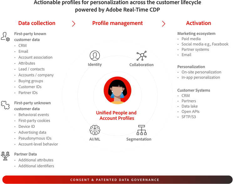 With Adobe Real-Time Customer Data Platform, marketers can collect data from different systems within the organisation, unify disparate data sources into actionable customer profiles, and activate high-value audiences across channels. Features such as Customer AI give marketers insights into customer propensity to determine which buyers are closest to making a purchase. Plus, with the patented Data Usage and Labeling framework, it’s easy to honor data usage policies as defined by regulations or partnership contracts.