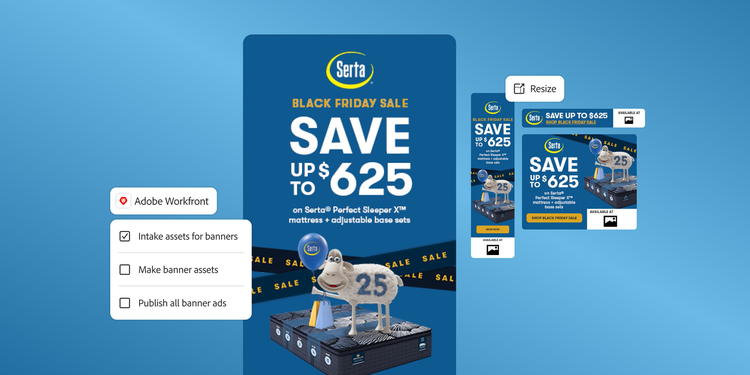 While many shoppers start browsing mattresses online, many make their purchase at one of SSB’s retail partners nationwide. To arm these partners with on-brand toolkits, the SSB team built a self-service content engine using Adobe Express and Workfront to help them to tell the brand story more effectively.