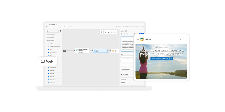 After automating the steps in guided channel set-up, brands can quickly launch web experiences as a touchpoint on the journey canvas in Journey Optimizer. This allows marketers to deliver truly personalised experiences at the right point in the customer journey. For example, a retail company can create a journey that triggers an exclusive offer on webpages that a trendsetting shopper is browsing.
