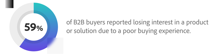 Customers are looking for a buying experience that provides them with easily accessible information — curated to their roles, business needs and priorities — no matter which channel they decide to use. Despite most companies’ efforts to meet this need, just 34% of B2B buyers said that the tech companies they’ve interacted with recently have met their expectations. In addition, another study shows 59% of B2B buyers reported losing interest in a product or solution due to a poor buying experience.