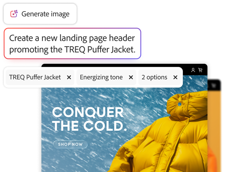 - Full experience generation. Use Adobe Firefly to generate high-quality images to pair with copy generated directly in Experience Manager Sites.