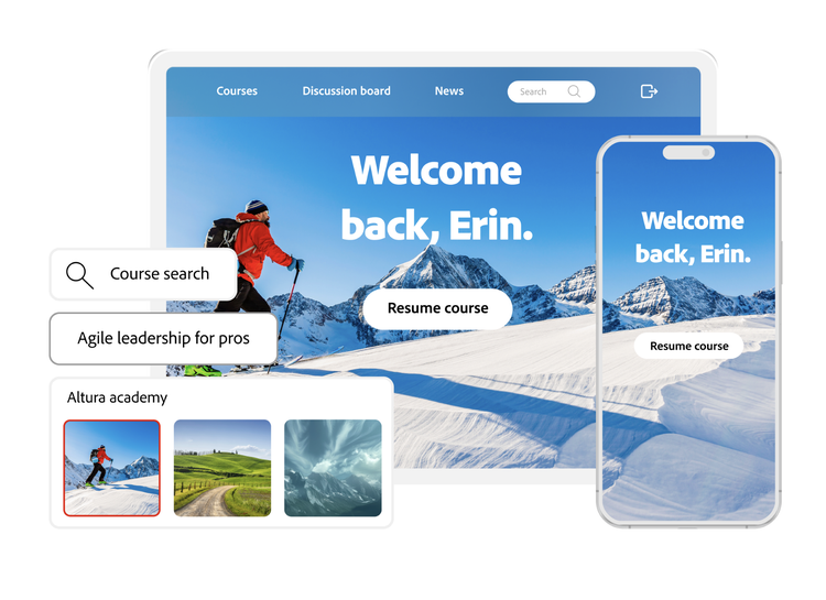 Create fully branded learning portals by embedding Learning Manager objects within Adobe Experience Manager (AEM) Sites, with minimal technical effort.