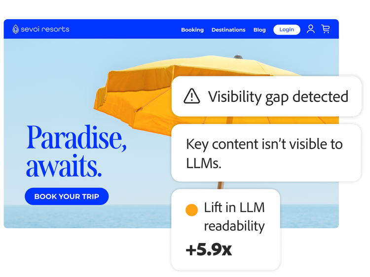 Enhance structured content visibility in LLMs with recommended technical fixes, including validation of structured data implementation and crawler accessibility. Generate LLM-ready versions of your webpages for agentic readers — all without affecting the content that human readers see.