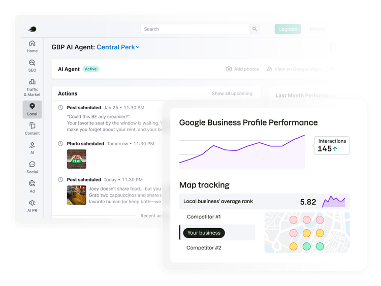 Bring in more local customers. Manage your listings, increase visibility in search and AI and control how your brand appears across every platform.