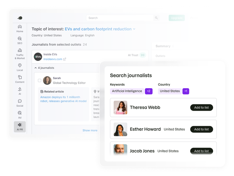 Shape how AI talks about your brand. Get into the sources LLMs trust, earn media coverage and track how that drives your presence in AI answers.