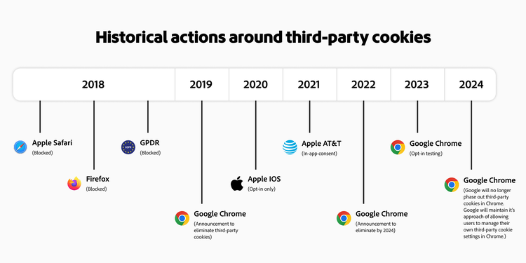 A primary reason these tools fall short is the degradation of customer engagement data due to changing online privacy standards — a minor earthquake for the marketing world. Some browsers, like Apple’s Safari and Mozilla’s Firefox, have completely blocked third-party cookies by default to preserve user privacy. Google now restricts cookies for 1% of browsers. While Google did reverse course on eliminating third-party cookies, users can block them in their Chrome browser settings.